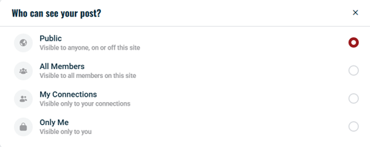 - From the options presented, select your preferred privacy setting (e.g., click All Members to make the post visible only to logged-in users).