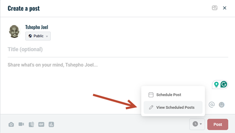 Click on the clock icon and select View Scheduled Posts.